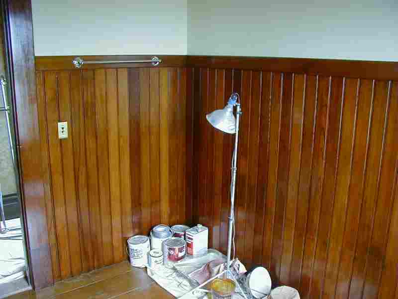 Photo Number 5: Another view of he newly finished wainscoting. Notice again the beautiful sheen of the shellac. This was the original wall treatment and is far superior to modern finishes. |