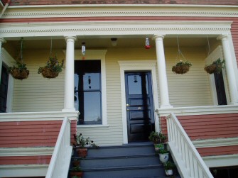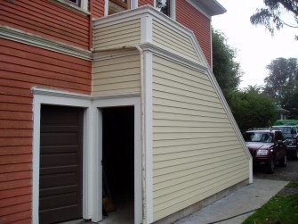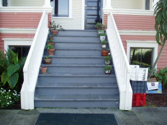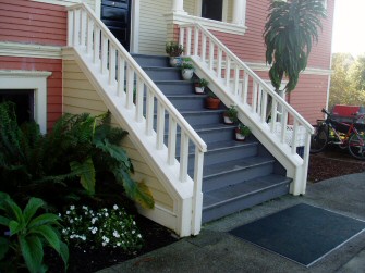 The side and back stairs on the house needed repair. They were restored to their original form, and painted in the original colors. Eventually the entire house will be painted this cream color.