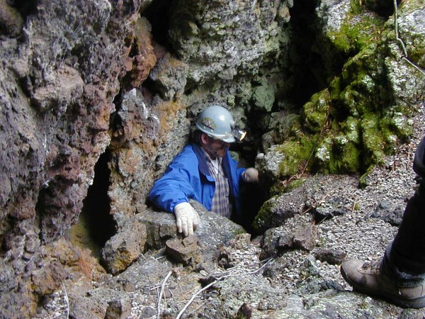 Rick exiting cave (Pumice Railway)
